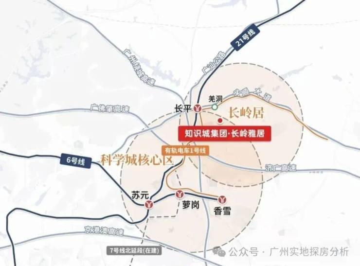 项目落子黄埔长岭居板块,毗邻科学城,既享 CBD 发展红利,又拥低密生态宜居环境,与黄埔区府直线相距仅约 3.9 公里。
