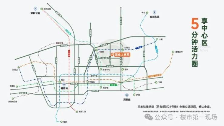 20分钟内抵达城市枢纽:福田高铁站、深圳北站、深圳站、福田口岸、皇岗口岸,出行方便。