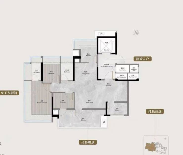 主卧约5.1米进深+270°环幕飘窗,视野无界;中轴式LDKB家庭厅(客餐厨阳台一体),从二人世界到三代同堂的,都能装下。