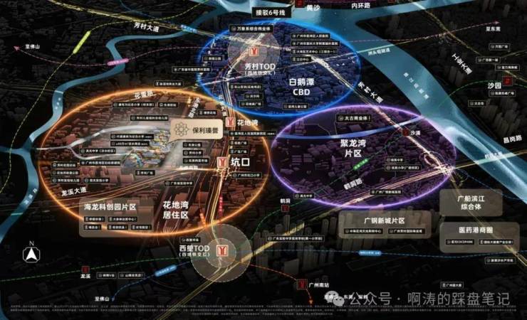 ◎花地湾居住区:大力推动产业科技互促双强,聚焦“广佛极点”科创中心功能定位。板块同步开发建设生活大城,承接产、商人群居住需求。