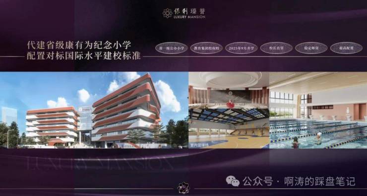 保利斥资约2亿全资代建省一级康有为纪念小学(36班公办学校,2025年9月开学),步行可达。教学配置高,对标国际水平的建校标准,室内配备游泳馆、报告厅、图书馆、篮球馆等,室外坐拥400米标准环形跑道,足球场等设施;