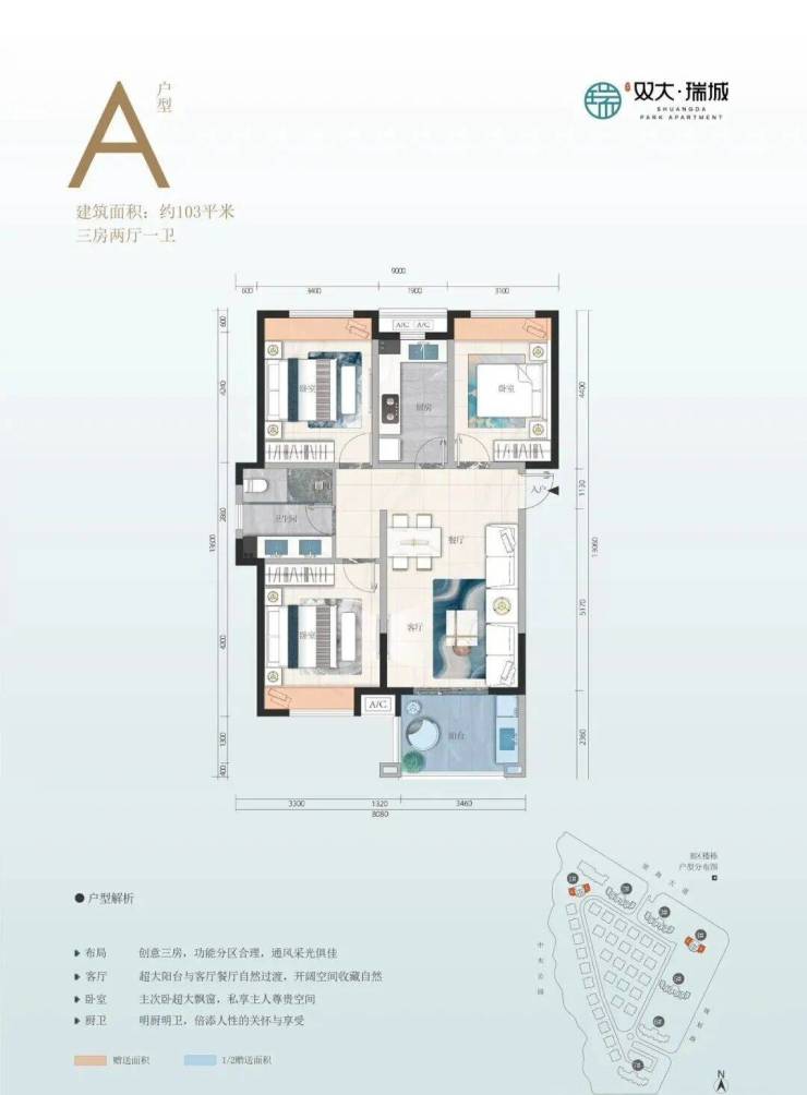 主力户型:76、81、83平稀缺两房,103平珍藏三房