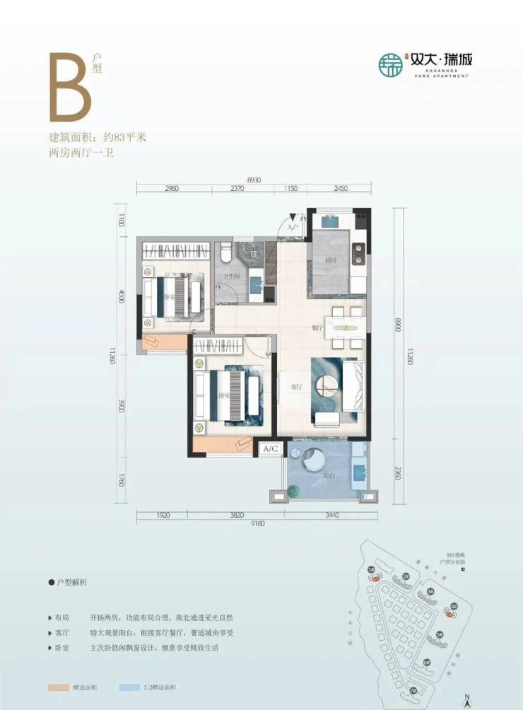 🌳【加售面积】B区83㎡两房、103㎡三房