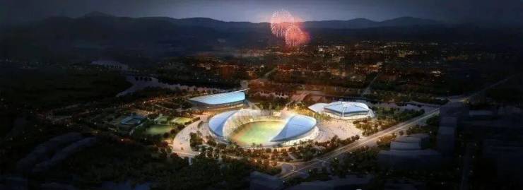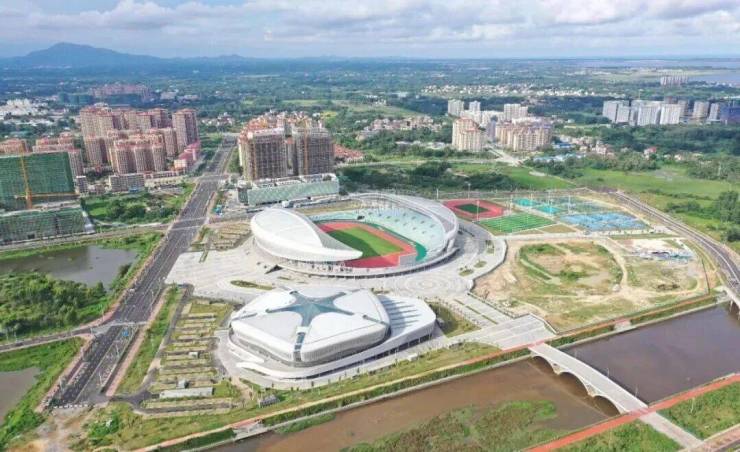 隔路相望海南省重点工程“文化体育广场”(2022年投入使用)包含:体育场、体育馆、游泳馆、网球场、篮球场、排球场、青少年活动交流中心、艺术馆、图书馆、展览馆、万安书院、市民广场等。