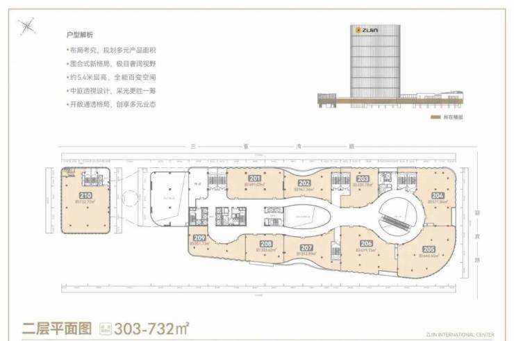 紫金国际中心匠心独运,打造六大主题分区,通过商务接待、宴请、休闲、文娱、潮玩等多元场景的演绎,选新高端商务未来,共鸣时代上层生活。