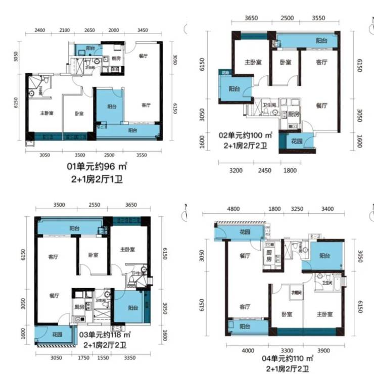 小区南向园林景观,北向河景,东向南站新区中轴线景观。