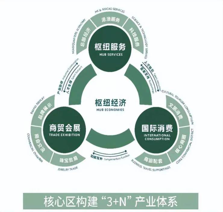 以枢纽服务、国际消费、商贸会展3大开放型综合产业为引擎,衍生N个创新服务型业态。