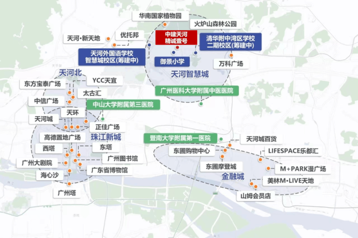 2KM 即是万科广场,15min 畅达太古汇、K11、IGC、天河城等大型商圈;20min 还可到达南方医科大学第三附属医院、广州复大肿瘤医院、广州市天河区中医医院,出门享繁华