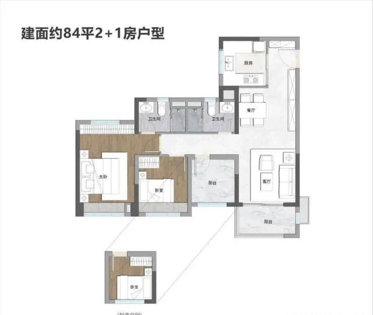 户型设计上,保利·领秀海还藏了不少巧思。有建面约74、84、95、120、126、139平三至四房设计,非常丰富。