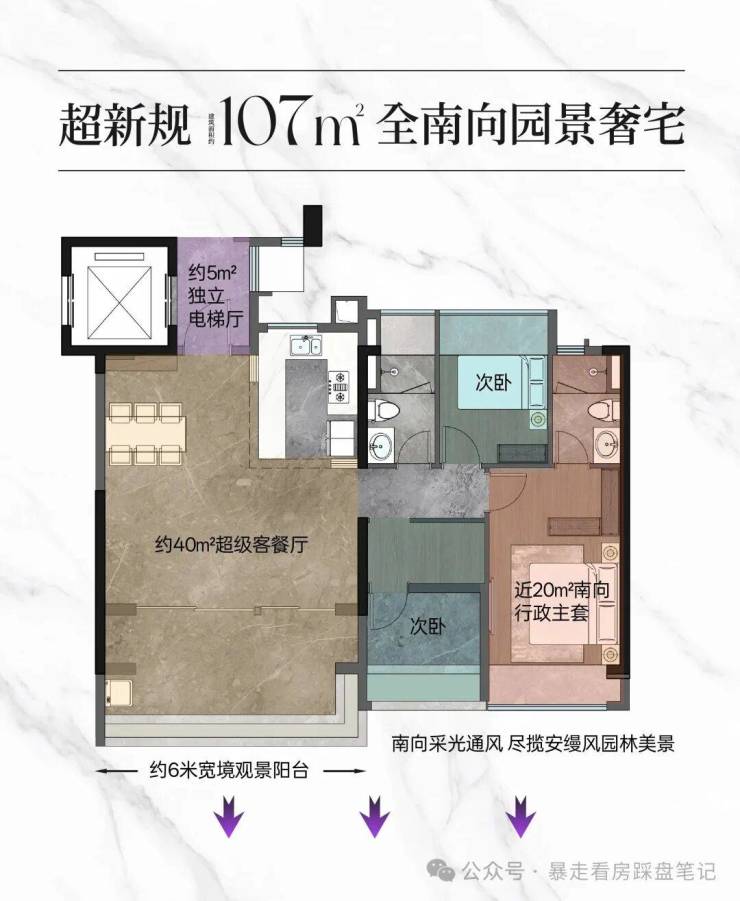 ◎ 纯南板楼:广州罕见纯南向、全板式楼盘,100%南北对流,100%四开间朝南;
