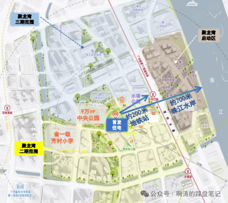 超级底盘+越级产品,广州西翼滨水生活范本【世界级商圈芯】|广州五大世界级商圈白鹅潭,核心引擎聚龙湾【太古里商圈内】|珠实太古双强携手,打造首个滨水太古里【步行友好底盘】|景观天桥+河涌绿道内部路网,300米太古里、700米珠江边【交通节点核心】|200米11号线地铁口,白鹅潭城市交通枢纽【滨水文脉生活】|大涌口冲交织珠江水岸,与40+处历史文化遗迹【公园古树环绕】|9万㎡中央公园+水塔公园在旁,约143棵古树环绕【低密私享奢宅】|片区少有的3.5容积率社区,约70%私梯入户/入户花园+全南视野