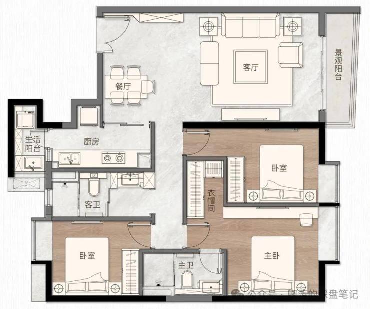 ·主卧奢配衣帽间,私藏优雅