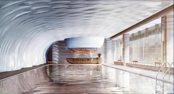其中,【空中巴比伦会所】是佛山唯一云端空中会所,涵盖佛山首个弧线星空泳池、高端私宴厅。