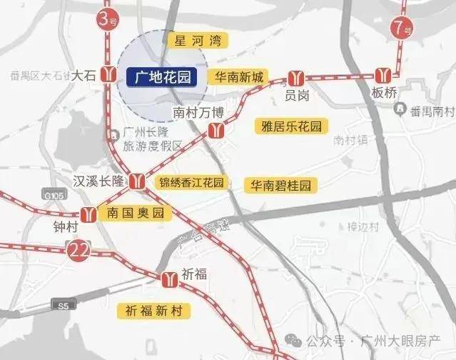 曾经的广地花园和祈福新邨、华南碧桂园、广州雅居乐花园、广州星河湾、锦绣香江花园、南国奥林匹克花园、华南新城,被誉为华南板块的八大金刚。