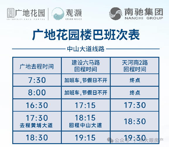 另外,如果不想开车的话,楼盘还配备3条楼巴线路,通达珠江新城、万博CBD及周边地铁站,挺方便的,一觉睡醒到天河不是梦。也有专线接驳地铁南村万博站(7分钟)和汉溪长隆站(10分钟),可乘坐地铁3-7-18号线。