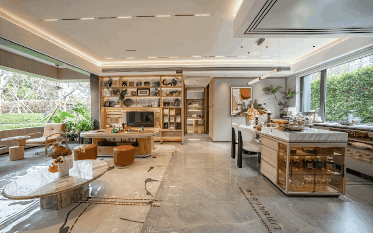 样板间做出了上一代产品130㎡的尺度感,LDKB一体化的设计,会客空间足够大。