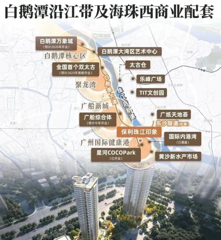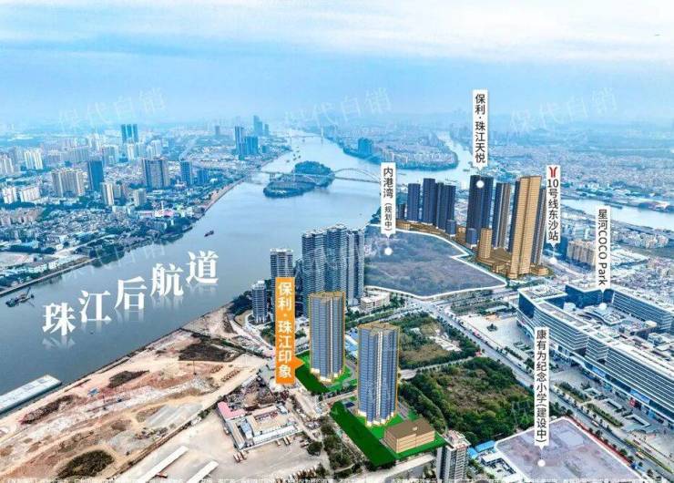 保利珠江印象位于荔湾区东沙国际商贸港片区,是广州“后航道沿江经济带”核心区域,紧邻珠江后航道,坐拥8万㎡内港湾江景资源,被誉为“广州首个内港湾小户型豪宅”