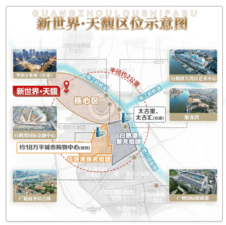项目位于滘口板块,临近白鹅潭CBD,荔湾区目前在建的华润万象城商业,滨水街区太古里、太古汇,三馆合一都在附近,旁边就是5号线的首发站,去往珠江新城、金融城等地都无需换乘,相对来说这一片居住设施还是比较成熟的,还是豪华交标!