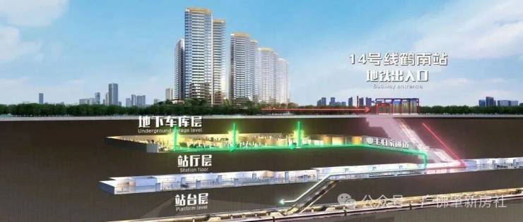 与14号线鹤南站A出口联通,直达社区地下二层车库的楼栋大堂,无忧天气变化,从容便捷归家。
