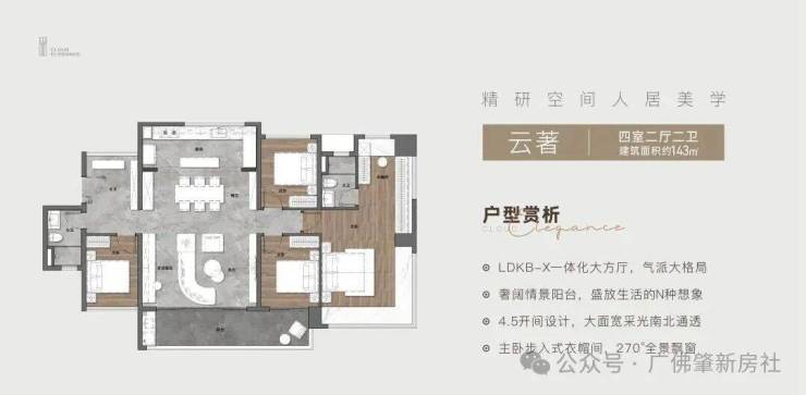 建面约143㎡四房两厅两卫;