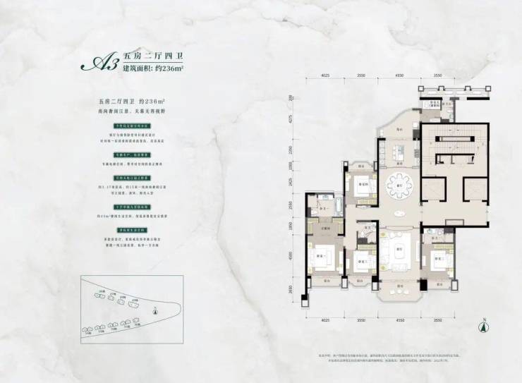 户型面积:236-1600㎡(含复式),主力户型为236-528㎡大平层,复式产品总价1.5亿起。