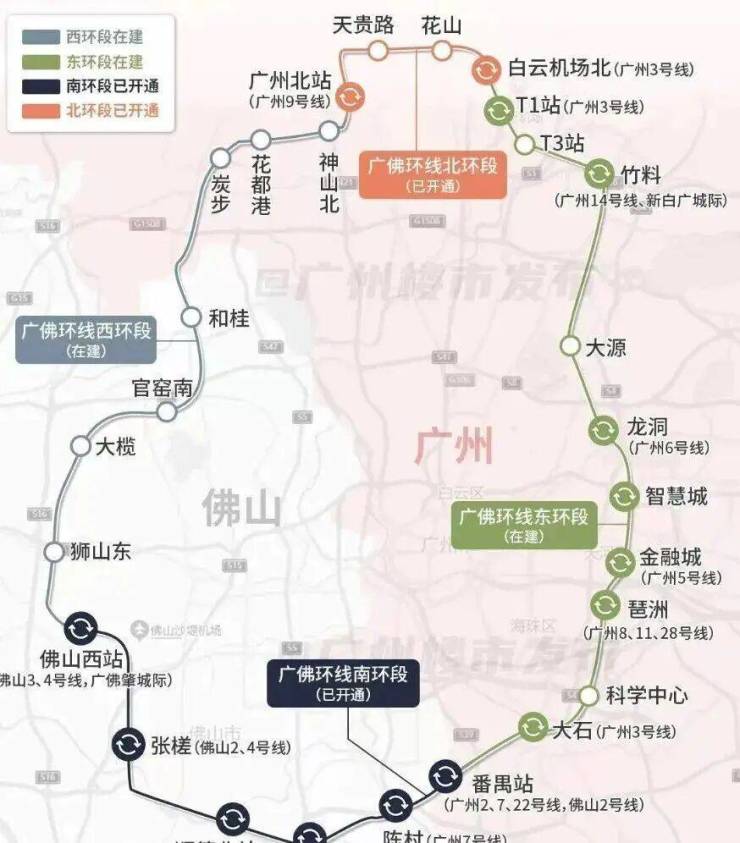 广佛环线东环力争在 2025 年全运会举办前(2025 年 11 月 9 日至 21 日)建成通车,届时城轨 3 站可到琶洲;
