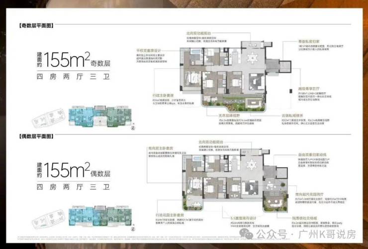 偶数层84方空中花园面积更大,有24个方。