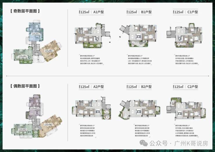 84方奇数层户型,3房2卫,竖厅格局,客厅可以和次卧打通成为一个超级大方厅。四开间朝南,南向面宽去到12.4米。空中花园面积达20㎡。