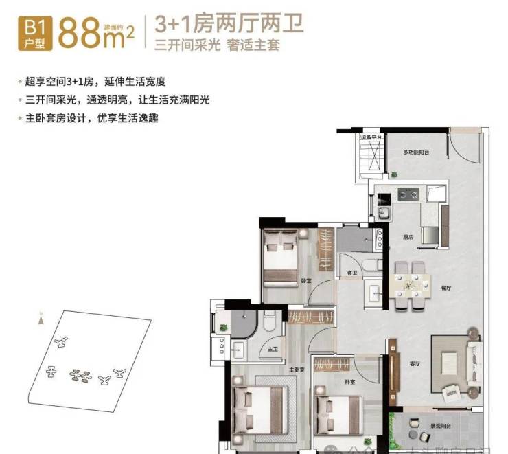 【88㎡3+1房2厅2卫(带主套)】
