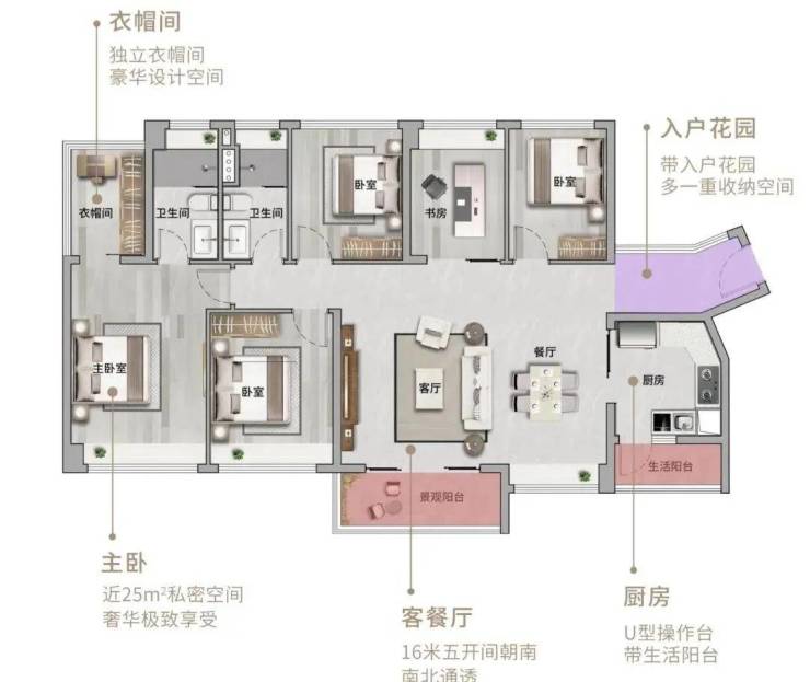 约25m²豪华主卧,带独立衣帽间
