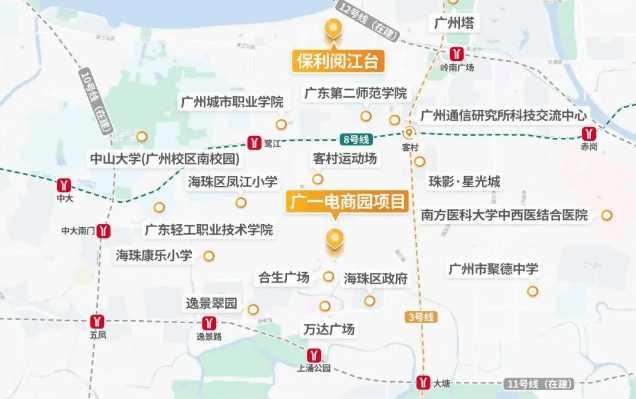 项目占据城市最核心的位置,左拥海珠成熟老城,右抱琶洲数字经济区,顶尖的资源及产业都沿着条中轴铺开。