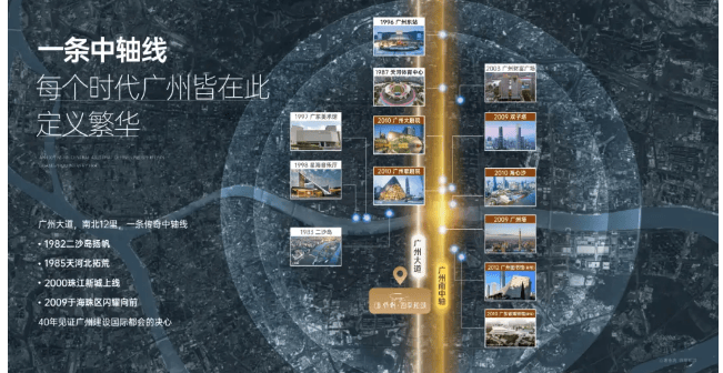 广州新中轴是广州发展的“大动脉”,天河北-珠江新城CBD中轴两端土地已发展饱和,顺应“南拓”发展趋势,未来的发展重心将落到海珠。