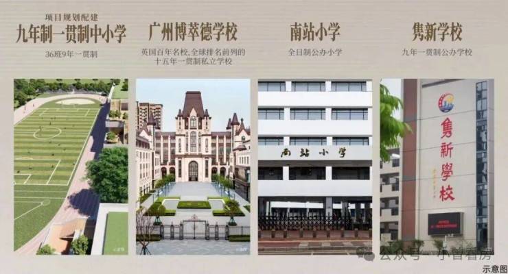 教育配套优质配建9班幼儿园和36班九年一贯制公办学校,引进湖南师范大学附属学校,预计2027年9月开学,周边有私立十五年一贯制私立广州博萃德国际学校。