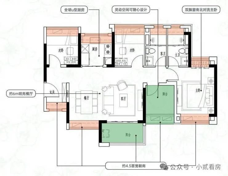 建面约98㎡4空间2厅2卫|得房率约95%