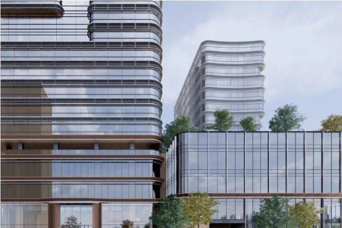 外立面采用木色陶板与全景玻璃幕墙,以“曲水流觞”的涟漪造型呼应珠江文脉,同时融入垂直生态理念,打造空中绿岛与可呼吸的建筑肌理。