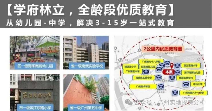 1公里摇号省一级广州第五中学今年划分、省一级广州市第九十七中学今年划分,省一级南武实验中学、海珠外国语实验中学今年划分、广州市第七十八中学、广州市海珠区实验中学。