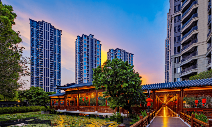 小区内自拥 4.6 万平方米的大型亲水园林,堪称中国古典园林的新里程碑。特别聘请香山帮来打造园林,兼顾晋派建筑的恢宏与徽派建筑的精巧,千米风雨连廊串连亭台廊轩,重现唐诗意境。园内还有参天大树掩映的荷塘风雅,为居民提供了一个充满诗意的休憩之所。此外,项目还配备了高端会所、私人管家高定服务等专属圈层服务,以及自主研发的星智家超感双循环智慧系统,保障业主数据隐私安全的同时,提升生活便捷度,重新定义品质生活新高度。