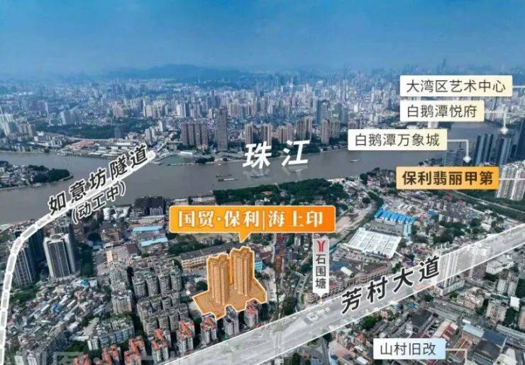 项目距离白鹅潭CBD核心区约1公里,出门往东约200米就是地铁11号线石围塘站,一站就到万象城、大湾区艺术中心等。近距离共享白鹅潭心脏区域的高端配套,近地铁,日常通勤也很便利。在建的如意坊隧道也在附近,开车到老西关只要几分钟,过江去往越秀、天河也会比现在快很多。