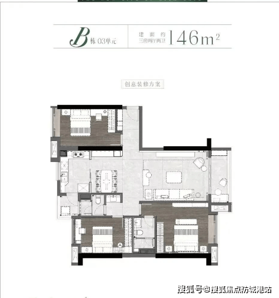 120-140㎡四房:空间宽敞,设计合理,满足家庭成长需求。