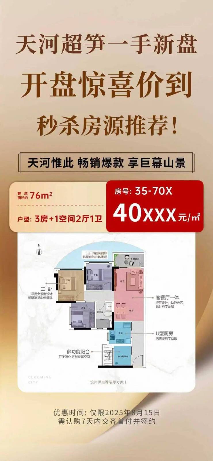 北向山景76㎡3房+1空间—总价约320万起