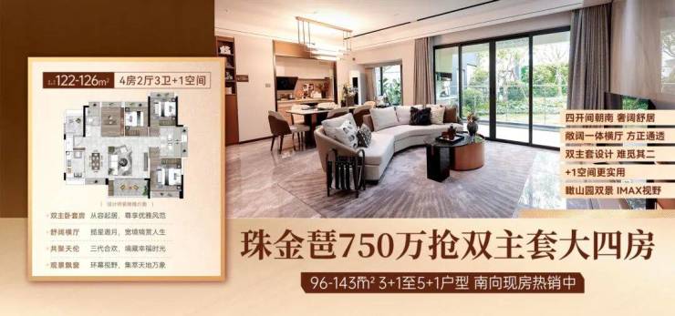 项目在售产品涵盖约96-143㎡的3+1至5+1户型,满足不同家庭结构的需求。近期重磅上新的13栋环幕园景央座,更是推出118㎡-142㎡的南北对流大户型,全盘仅2栋,2梯4户设计,尽享尊贵与私密。超高空间使用率,多一空间设计,让生活更加从容不迫。