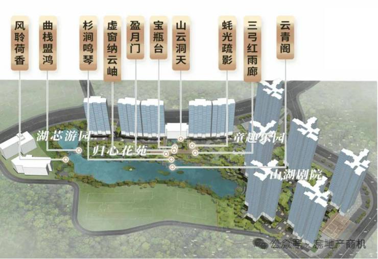 凤聆荷香、杉涧鸣琴、山云洞天...点缀在小区的十处景观,天然带有文化基底。