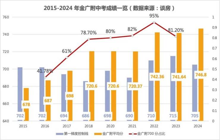 2、金广附连续7年广州中考TOP 1 梯队,历年中考成绩: