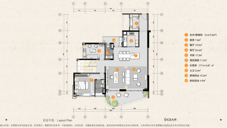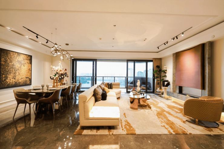鼎湖峯 4 栋 A 座 3404 户型 266㎡ 轻奢创意顶复·270°城市天际线:266㎡的轻奢创意顶复,拥有 270°城市天际线视野,将城市繁华与自然美景尽收眼底。首层和二层的创意设计,注重空间的合理利用和居住的舒适度,营造出温馨而奢华的居住氛围。