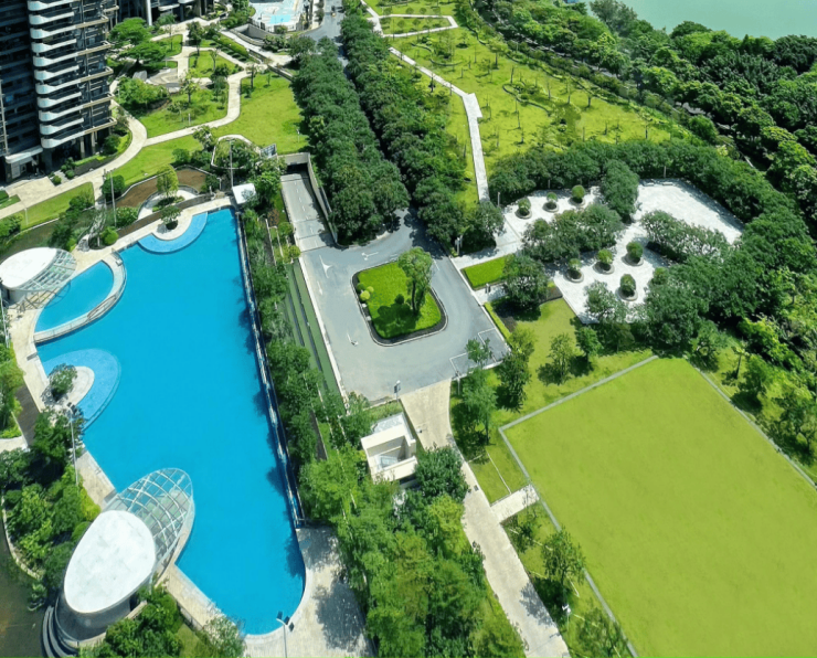 小区内部设施完善,环境优美。拥有 1400㎡星级无界观湖泳池,居民可在泳池中尽情享受湖景与游泳的乐趣。5.2 万㎡叠水主题园林景观,打造出如诗如画的居住环境,让居民仿佛置身于花园之中。家楼下的 6KM 临湖健康绿道,为居民提供了休闲健身的好去处。2.8 容积率 + 44.8%超高绿地率,匠造超低密度健康生态社区,空气清新,居住舒适度高。