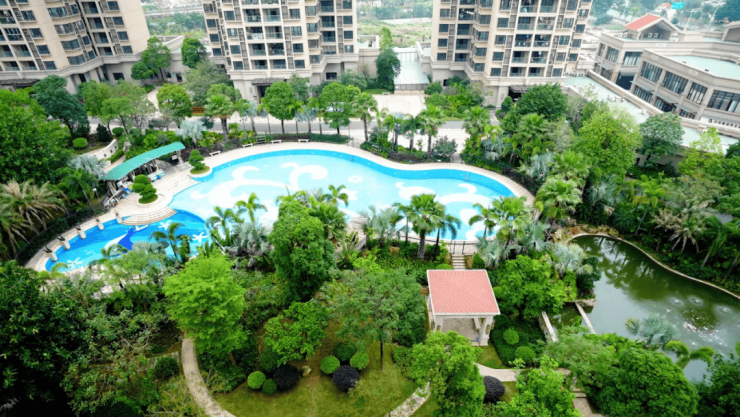 从西区东门进来,迎面就是一个大广场,往里走还有约1.4万㎡的中心湖景,以及东南亚风情户外泳池,再加上错落排布的珍植,走在这样的小区,回家都是一种享受。