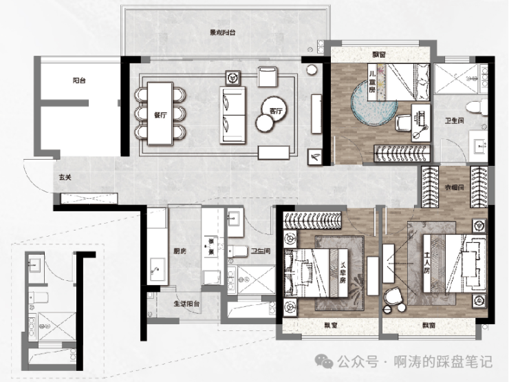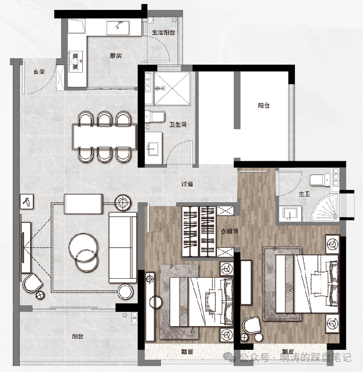 双阳台配置,南北通适,动静分区