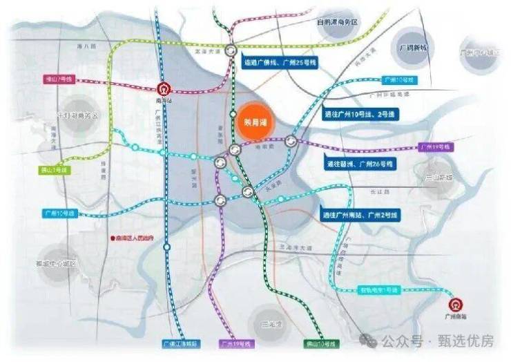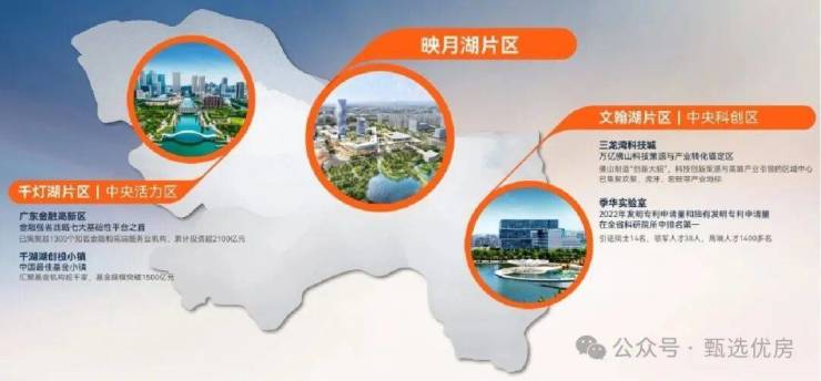 [太阳]映月湖——鼎立桂城的三湖之一,也是未来新发力点,广佛中心C位千灯湖-映月湖-文翰湖,三湖架起桂城城市发展格局。作为广佛同城极核C位,映月湖是桂城发展的腰部板块,城市发展新核心。其中映月湖中央人文区,未来10年投入约2千亿推进文化:社区、产业、交通、民生、生态六大工程。