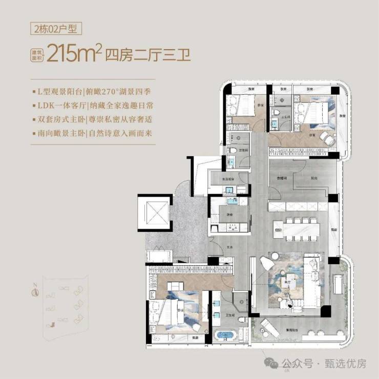 全部户型270°环绕飘窗,L型转角景观阳台,双阳台