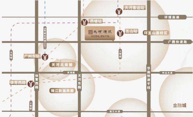 项目落子天河环五山创新策源区,紧邻华南理工大学,距珠江新城约4.5公里——这个位置天生带着“天河北后花园”的光环。